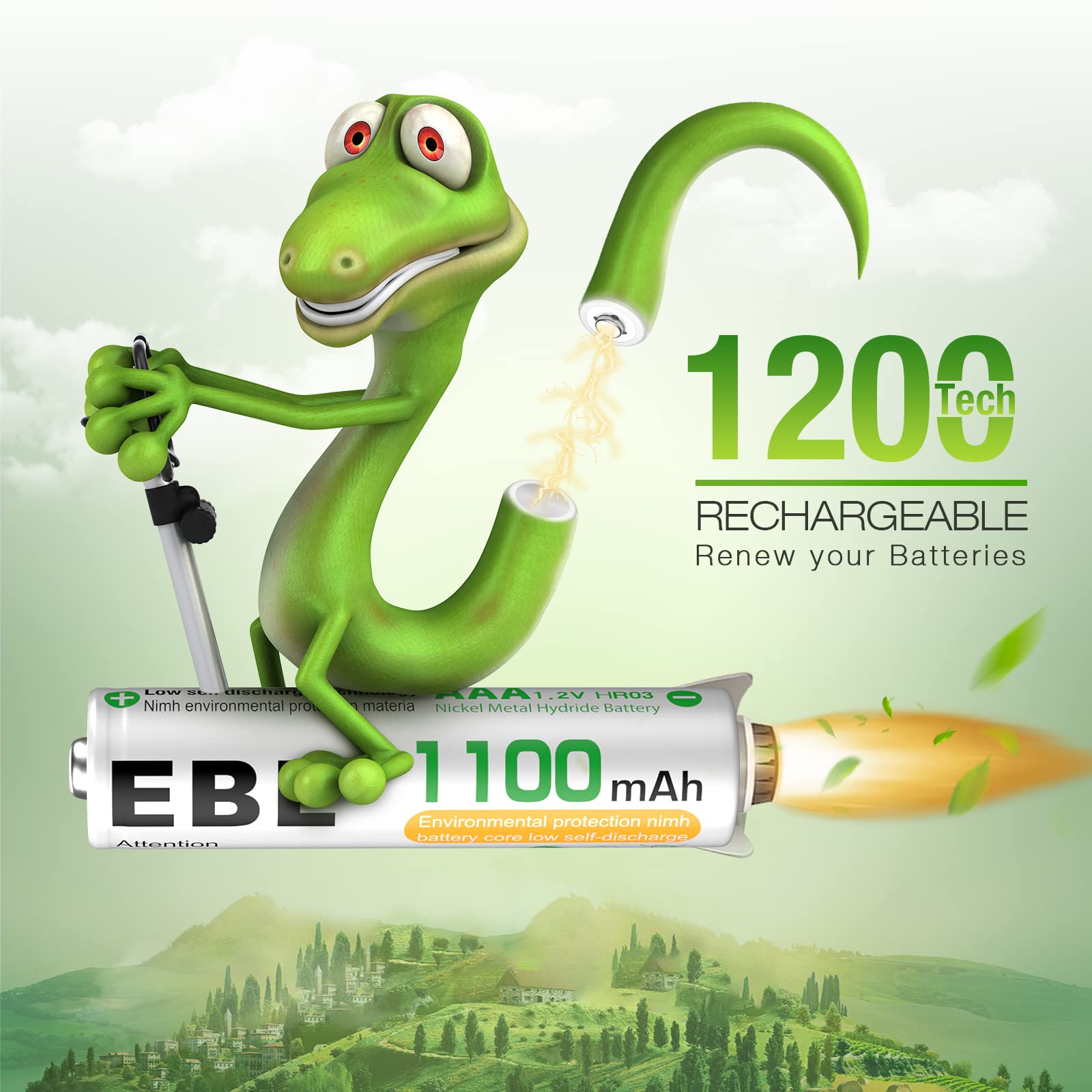 - 1100mAh AAA rechargeable batteries providing a long use time and performance well.